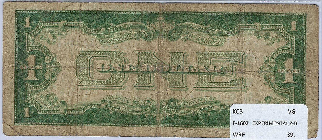 $1 1928B Silver Cert. F-1602 Z-B Block Experimental. VG . . . FACE . . . BACK . . . 28.00